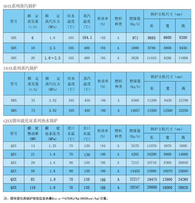 我公司生產(chǎn)的循環(huán)流化床鍋爐系列產(chǎn)品有6t/h、10t/h、20t/h、35t/h、75t/h、120t/h、240t/h蒸汽鍋爐、7.0MW、14MW、21MW、29MW、46MW、58MW、92MW、116MW熱水鍋爐。我公司的循環(huán)流化床產(chǎn)品是我公司和中國科學(xué)院熱能物理研究所、哈爾濱工業(yè)大學(xué)聯(lián)合開發(fā)的具有國內(nèi)先進水平的新產(chǎn)品。循環(huán)流化床鍋爐具有煤種適應(yīng)性廣、燃燒效率高、負荷調(diào)節(jié)范圍寬、可爐內(nèi)脫硫、脫硝、NOx排放量低、環(huán)境保護好、灰渣可綜合利用等特點??蓮V泛應(yīng)用于熱電聯(lián)產(chǎn)和集中供熱事業(yè)。